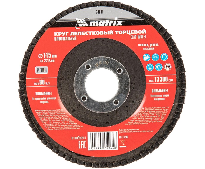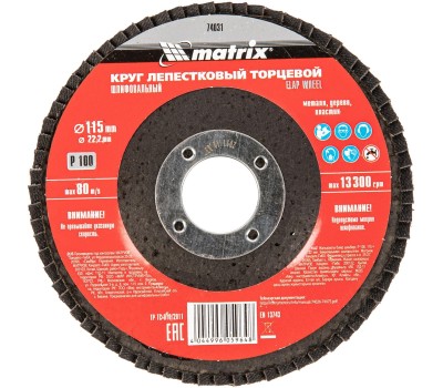 MATRIX Круг лепестковый торцевой, P 100, 115 х 22.2 мм 74031