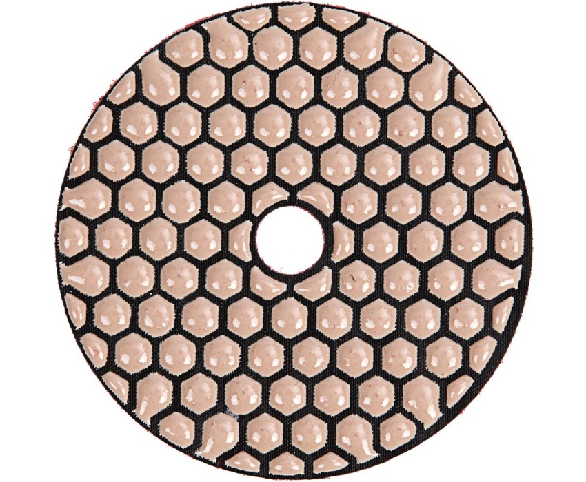 Алмазный гибкий шлифовальный круг Matrix 73503 диаметром 100 мм, с зернистостью P 400, 5 шт. в упаковке, предназначен для сухого шлифования гранита, мрамора, природного и искусственного камня, керамогранита. Используется на поверхностях разного цвета, преимущественно белых. Абразив с зернистостью P 400 снимает тонкий слой материала и применяется для чистового шлифования. Гибкий круг удобен для обработки предметов сложной формы. Оснастка используется на УШМ с установленной опорной тарелкой для АГШК. Преимущества Устойчивость к нагреву и износу — рабочая поверхность отличается высокой концентраций алмазов, а в качестве связки использован качественный термопластик. Шлифовка без охлаждающей жидкости — рабочая поверхность из круглых сегментов с промежутками между ними («черепашка») обеспечивает эффективный отвод шлама. Быстрая установка — система крепления velcro позволяет моментально закрепить круг на липучке опорной тарелки. Удобная комплектация — в упаковке 5 штук, которых хватит для выполнения большого объема работ.