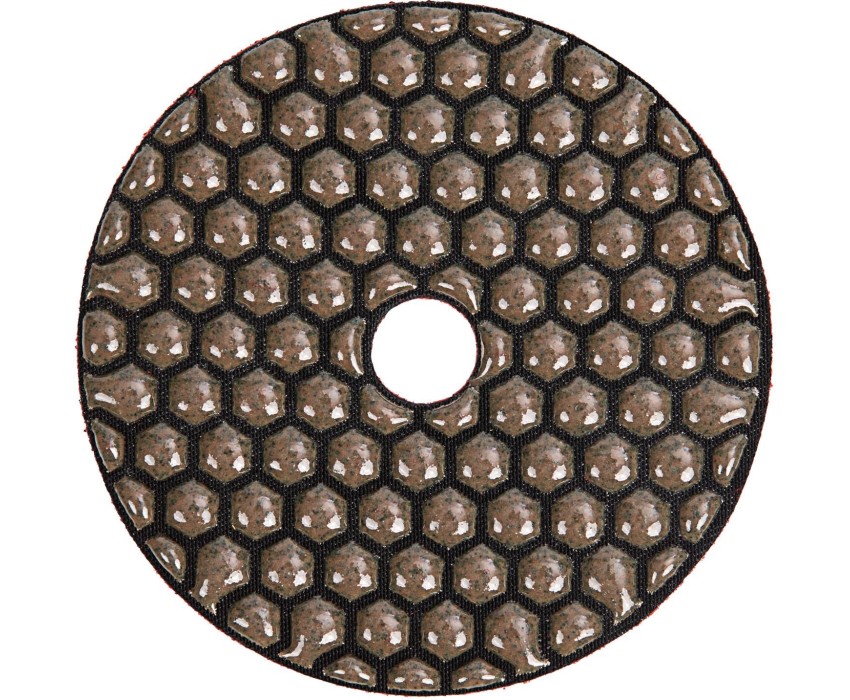 Алмазный гибкий шлифовальный круг Matrix 73500 диаметром 100 мм, с зернистостью P 50, 5 шт. в упаковке, предназначен для сухого шлифования преимущественно цветных и черных поверхностей из гранита, мрамора, природного и искусственного камня, керамогранита. Абразив с зернистостью P 50 снимает большой слой материала и используется для черновой шлифовки. Гибкий круг удобен для обработки предметов сложной формы. Оснастка используется на УШМ с установленной опорной тарелкой для АГШК. Преимущества Устойчивость к нагреву и износу — рабочая поверхность отличается высокой концентраций алмазов, а в качестве связки использован качественный термопластик. Шлифовка без охлаждающей жидкости — рабочая поверхность из круглых сегментов с промежутками между ними («черепашка») обеспечивает эффективный отвод шлама. Быстрая установка — система крепления velcro позволяет моментально закрепить круг на липучке опорной тарелки. Удобная комплектация — в упаковке 5 штук, которых хватит для выполнения большого объема работ.