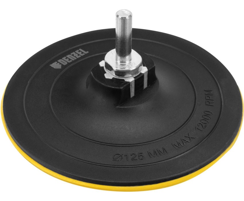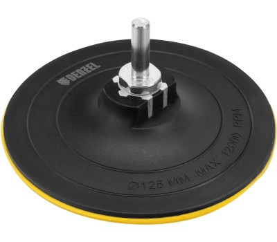 DENZEL Тарелка опорная для дрели и УШМ с липучкой, 125 мм, твердая, с адаптером c М14 на d8 76254