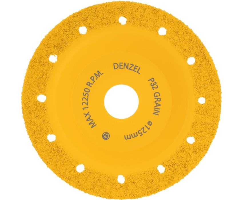 Твердосплавная зачистная чашка Denzel 72978 диаметром 125 мм, с плоской рабочей частью и мелким зерном P32, используется для проведения шлифовальных работ при помощи углошлифовальной машины (УШМ). Мелкозернистый абразив оптимален для чистовой обработки твердой и мягкой древесины, кирпича, пластика, резины, газобетона. С помощью чашки можно устранить мелкие неровности, остатки старого покрытия, подготовить поверхности к дальнейшей отделке. Режущие частицы из твердого сплава ВК8 не образуют абразивную пыль, что снижает вредное воздействие на здоровье пользователя. Оснастка пригодится при проведении строительных, ремонтных и отделочных работ. Преимущества Высокая режущая способность — твердосплавный абразив позволяет быстро и эффективно решать поставленные задачи. Снижение нагрузки на УШМ — использование оснастки с облегченным корпусом позволяет избежать поломки инструмента. Надежность — штампованный корпус из стали 45 отличается высокой прочностью. Высокий ресурс — абразивные зерна надежно закреплены на основании методом вакуумной пайки, рабочая поверхность не подвержена засаливанию. Производительность — в корпусе предусмотрены отверстия для отвода шлама, что обеспечивает эффективное охлаждение и высокую скорость работы. Защита от коррозии — на чашку нанесено эмалевое покрытие. Простой уход — после окончания работы достаточно очистить оснастку щеткой.