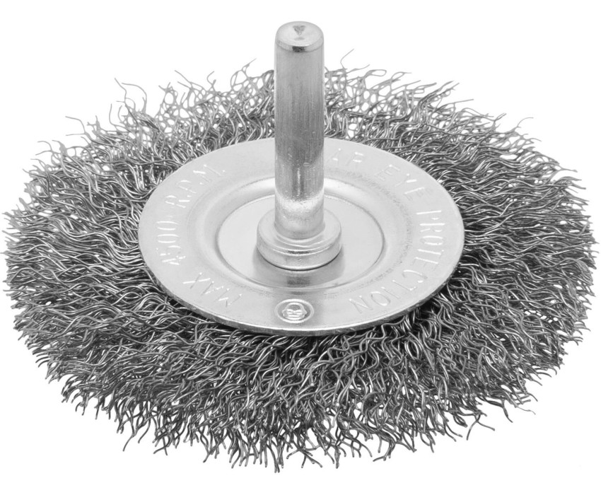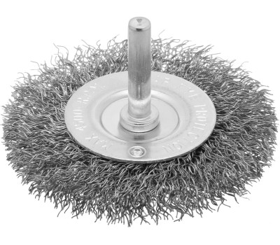 Плоская щетка для дрели Сибртех 744487 диаметром 75 мм, со шпилькой и щетиной из витой проволоки 0,3 мм, используется для щадящей обработки металлических, деревянных и пластиковых поверхностей. Удаляет загрязнения, ржавчину, старые лакокрасочные покрытия. Благодаря плоской форме щетка идеально подходит для очистки труднодоступных мест, пазов, изгибов, внутренних углов. Хвостовик диаметром 6 мм устанавливается в патрон дрели. Рекомендуемая скорость вращения 4500 об/мин. Во время работы следует использовать средства индивидуальной защиты. Щетку применяют во время строительства, ремонта, а также в быту. Преимущества Мягкое воздействие на поверхность — щетку можно использовать для создания необходимой шероховатости или для выявления структуры материала, например, древесины. Прочность и долговечность — щетина изготовлена из высококачественной стальной проволоки. Защита от разрушения — корпус оцинкован, щетина покрыта техническим маслом для защиты от коррозии.