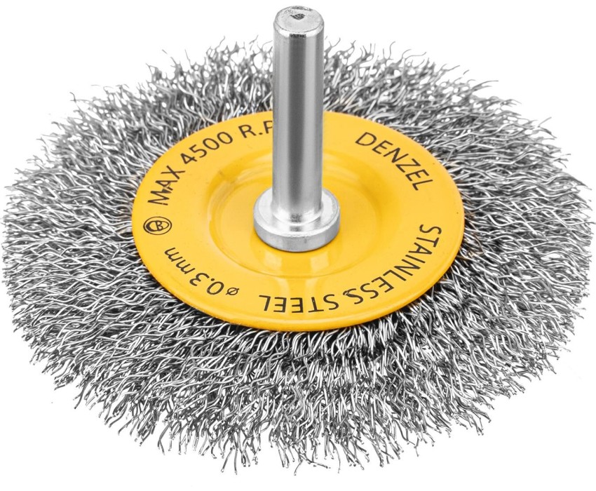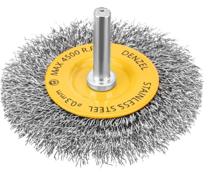 DENZEL Щетка для дрели, 75 мм, Плоская, со шпилькой, нержавеющая витая проволока 744603