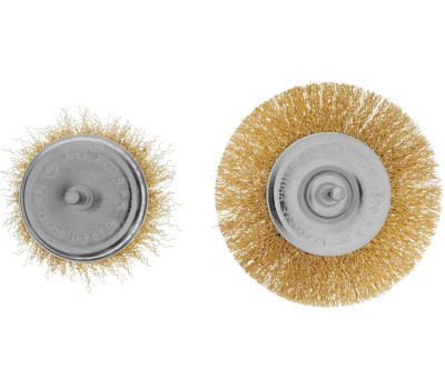 Набор щеток Matrix 74480 включает 2 насадки со шпильками диаметром 6 мм для установки на дрель: одну плоскую диаметром 100 мм и одну «чашку» диаметром 75 мм. С их помощью можно снять тонкий слой ржавчины и лакокрасочных покрытий, удалить загрязнения. Многопрофильный набор позволяет выбрать оптимальную насадку для обработки плоских поверхностей или углов и пазов. Преимущества Прочность и высокий ресурс — щетина изготовлена из высококачественной стальной проволоки. Универсальность — набор подходит для обработки древесины, металла, пластика и других твердых материалов. Бережное очищение — витая щетина предназначена для щадящей обработки поверхностей. Защита от коррозии — корпусы щеток оцинкованы, а щетина латунирована.