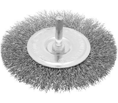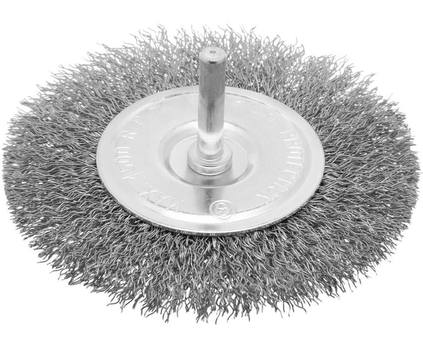 Плоская щетка для дрели Сибртех 744507 диаметром 100 мм, со шпилькой и щетиной из витой проволоки 0,3 мм, используется для щадящей обработки металлических, деревянных и пластиковых поверхностей. Удаляет загрязнения, ржавчину, старые лакокрасочные покрытия. Благодаря плоской форме щетка идеально подходит для очистки труднодоступных мест, пазов, изгибов, внутренних углов. Хвостовик диаметром 6 мм устанавливается в патрон дрели. Рекомендуемая скорость вращения 4500 об/мин. Во время работы следует использовать средства индивидуальной защиты. Щетку применяют во время строительства, ремонта, а также в быту. Преимущества Мягкое воздействие на поверхность — щетку можно использовать для создания необходимой шероховатости или для выявления структуры материала, например, древесины. Прочность и долговечность — щетина изготовлена из высококачественной стальной проволоки. Защита от разрушения — корпус оцинкован, щетина покрыта техническим маслом для защиты от коррозии.