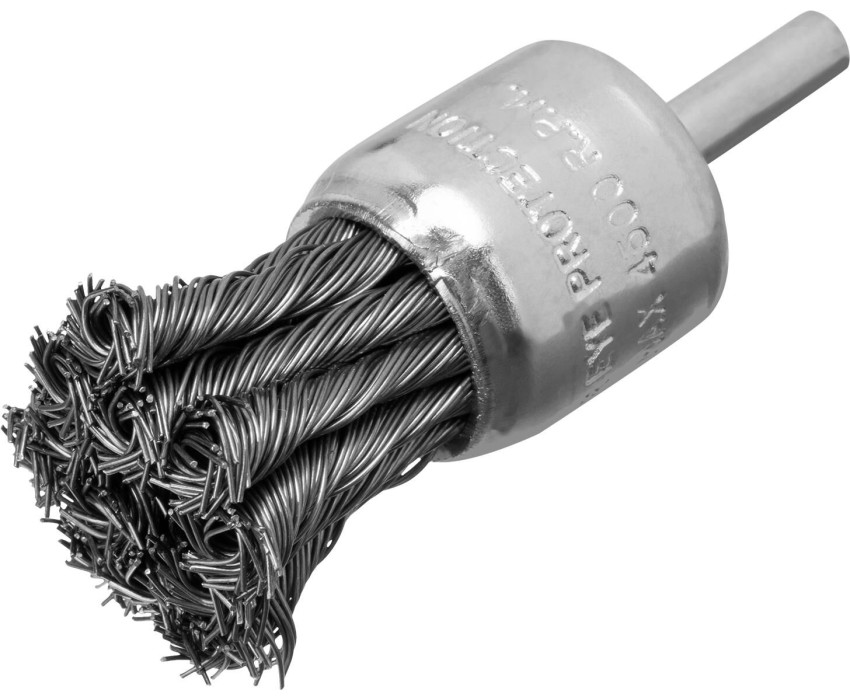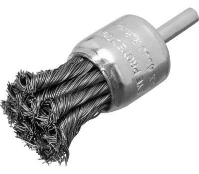 Щетка для дрели «чашка» Matrix 74466 диаметром 30 мм, со шпилькой и щетиной из крученой металлической проволоки, — оснастка для электродрелей с патроном под хвостовик диаметром 6 мм. Рекомендуемая скорость вращения 4500 об/мин. Насадку используют для зачистки сварных швов и черновой обработки металлических, деревянных, бетонных поверхностей. Щетка эффективно удаляет толстый слой загрязнений, ржавчины, ЛКМ. Благодаря форме «чашка» насадка оптимальна для обработки значительных по площади поверхностей. Ее применяют в строительстве, машиностроении, а также в быту. Во время работы необходимо использовать средства индивидуальной защиты. Преимущества Устойчивость к повышенным нагрузкам — щетина состоит из пучков, скрученных из высококачественной стальной проволоки. Решение широкого спектра задач — диаметр проволоки составляет 0,5 мм, поэтому щетка подходит для работы с различными видами загрязнений. Защита от коррозии — корпус оцинкован, щетина покрыта техническим маслом. Гарантированное качество — щетка изготовлена на крупном заводе с соблюдением всех технологических норм.