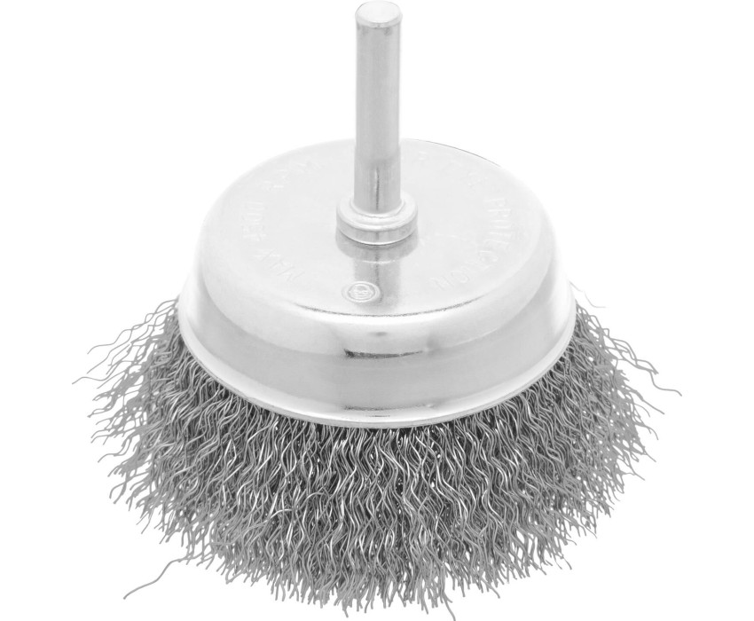 Щетка для дрели «чашка» Сибртех 744787 диаметром 75 мм, со шпилькой и щетиной из витой проволоки 0,3 мм, предназначена для щадящей обработки значительных по площади металлических, деревянных и пластиковых поверхностей — удаления загрязнений, остатков краски и лака, придания шероховатости или подчеркивания структуры материала. Насадка с хвостовиком 6 мм устанавливается в патрон электродрели, поддерживающей работу со скоростью 4500 об/мин. Во время работы с инструментом обязательно использование защитной одежды и обуви, очков, респиратора и наушников. Щетку применяют в профессиональной сфере и в быту. Преимущества Долговечность — щетина изготовлена из высококачественной стальной проволоки. Устойчивость к деформации — витая проволока принимает изначальную форму после снятия нагрузок. Высокая производительность — щетка имеет форму чашки, что увеличивает площадь прилегания щетины к обрабатываемой поверхности. Защита от коррозии — корпус оцинкован, щетина покрыта техническим маслом.