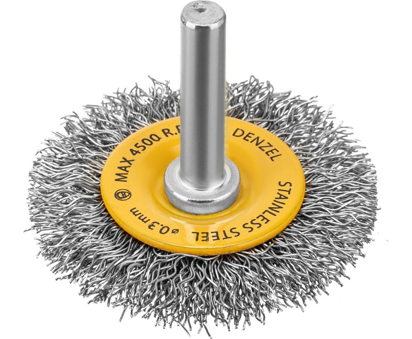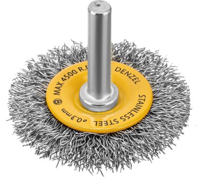 DENZEL Щетка для дрели, 50 мм, Плоская, со шпилькой, нержавеющая витая проволока 744623