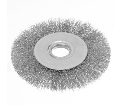 Плоская щетка для УШМ Denzel 746563 диаметром 125 мм, с щетиной из витой нержавеющей проволоки 0,3 мм, с посадкой 22,2 мм, постепенно снимает тонкий слой материала, поэтому ее используют для щадящей обработки металлических, деревянных, пластиковых поверхностей, а также изделий из нержавеющей стали. Щетка удаляет ржавчину, загрязнения, остатки лакокрасочных покрытий из труднодоступных мест, пазов и углов. Оснастка с посадкой 22,2 мм устанавливается на фланец углошлифовальной машины, что удобно для длительной работы без смены насадок. Рекомендуемая максимальная скорость вращения составляет 4500 об/мин. Во время работы следует использовать средства индивидуальной защиты. Щетку применяют в строительстве, машиностроении, а также в быту. Преимущества Щетина хорошо держит форму благодаря витой проволоке, устойчивой к деформациям при нагрузках. Частицы щетины, оставшиеся на обработанной поверхности, не ржавеют, поскольку проволока изготовлена из нержавеющей стали AISI 201. Щетка устойчива к коррозии даже в условиях повышенной влажности, т.к. ее корпус оцинкован, а щетина выполнена из нержавейки. Оснастка обладает повышенной прочностью благодаря усиленному корпусу. Высокое качество щетки подтверждено производителем, осуществляющим строгий технологический контроль на всех этапах производства.