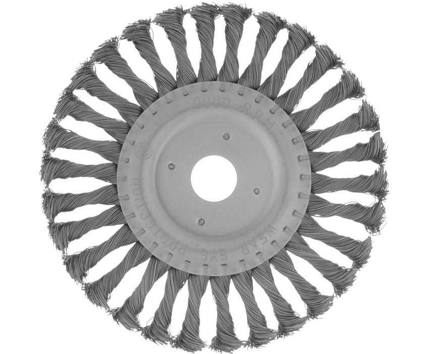 Плоская щетка Matrix 74636 диаметром 175 мм и посадкой 22,2 мм, с щетиной из крученой проволоки толщиной 0,5 мм, устанавливается на вал УШМ, поддерживающей скорость вращения не более 9000 об/мин. Эффективно удаляет загрязнения, толстый слой ржавчины и лакокрасочных материалов с поверхностей, поэтому используется для проведения грубой (черновой) обработки. Плоской щеткой удобно очищать труднодоступные места, в том числе углы и изгибы. Преимущества Долговечность — щетина из высококачественной стальной проволоки устойчива к износу. Универсальность — щетка подходит для обработки любых твердых поверхностей: из металла, древесины, цветных металлов, пластика и т. д. Стойкость к разрушению — корпус оцинкован, а щетина покрыта техническим маслом для защиты от коррозии.