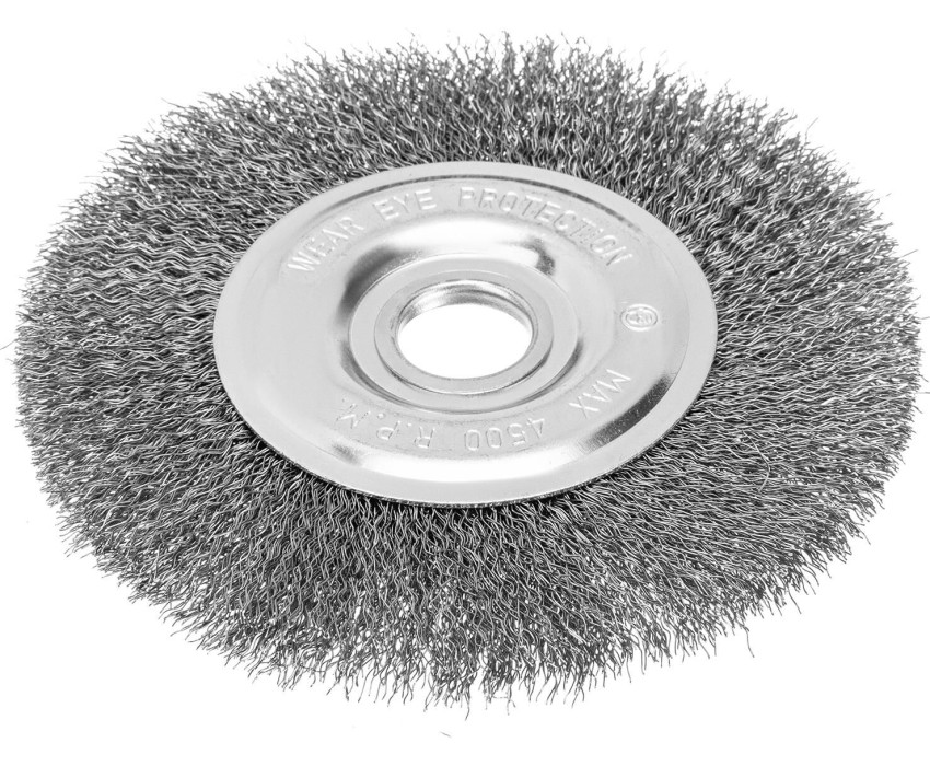 Плоская щетка для УШМ Сибртех 746647 диаметром 150 мм, с посадкой 22,2 мм, с щетиной из витой проволоки диаметром 0,3 мм, предназначена для щадящей очистки твердых поверхностей от загрязнений, ржавчины, остатков краски и других покрытий. Щетина из проволоки толщиной 0,3 мм постепенно снимает тонкий слой материала. Плоская форма щетки делает ее оптимальным инструментом для обработки внутренних углов, пазов, изгибов и малодоступных мест. Щетка позволяет придать шероховатость или подчеркнуть структуру материала. Насадка устанавливается на фланец углошлифовальной машины и подходит для продолжительной работы, не требующей частой смены оснасток. Рекомендуемая максимальная скорость вращения составляет 4500 об/мин. Для обеспечения безопасности оператора следует использовать средства индивидуальной защиты. Щетка применяется в строительной, производственной сфере, а также в быту. Преимущества Благодаря витой проволоке щетина хорошо держит форму. Проволока из высококачественной стали обеспечивает щетке высокий ресурс работоспособности. Оцинкованный корпус и щетина, покрытая техническим маслом, защищены от коррозии, что продлевает срок службы оснастки.