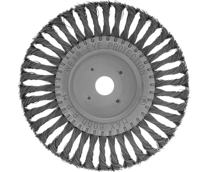 Плоская щетка Matrix 74638 диаметром 200 мм и посадкой 22,2 мм, с щетиной из крученой проволоки толщиной 0,5 мм, устанавливается на вал УШМ, поддерживающей скорость вращения не более 6000 об/мин. Эффективно удаляет загрязнения, толстый слой ржавчины и лакокрасочных материалов с поверхностей, поэтому используется для проведения грубой (черновой) обработки. Плоской щеткой удобно очищать труднодоступные места, в том числе углы и изгибы. Преимущества Долговечность — щетина из высококачественной стальной проволоки устойчива к износу. Универсальность — щетка подходит для обработки любых твердых поверхностей: из металла, древесины, цветных металлов, пластика и т. д. Стойкость к разрушению — корпус оцинкован, а щетина покрыта техническим маслом для защиты от коррозии.