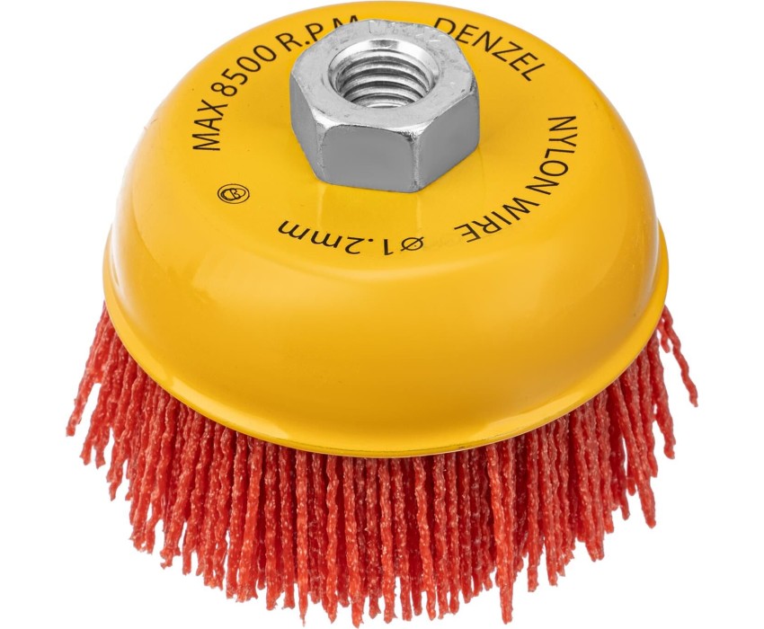 DENZEL Щетка для УШМ, 100 мм, Чашка, нейлоновая щетина, М14 74469