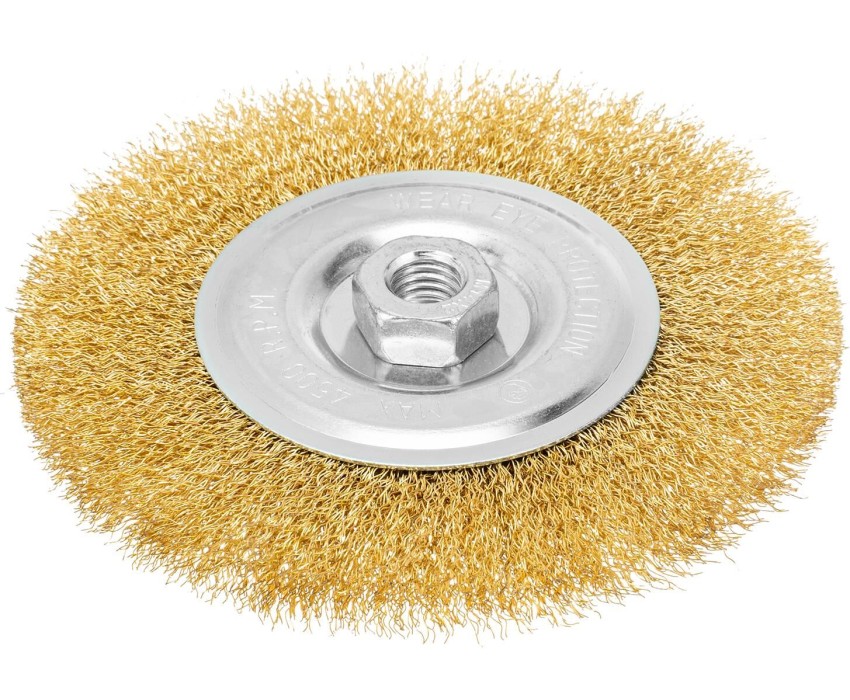 Плоская щетка Matrix 74652 диаметром 150 мм, с щетиной из латунированной витой проволоки, крепится к валу УШМ с помощью гайки М14. Используется для щадящей обработки поверхностей, снятия тонкого слоя ржавчины, лакокрасочных покрытий, удаления въевшихся загрязнений. Плоской щеткой удобно работать в труднодоступных местах: углах и изгибах. При эксплуатации на рекомендованной скорости 4500 об/мин оснастка прослужит долго. Преимущества Деформационная стойкость — витая проволока из стали хорошо держит форму даже при высоких нагрузках. Решение широкого спектра задач — оснастка подходит для обработки древесины, пластика, металлов, в том числе цветных, а также других материалов. Защита от разрушения — оцинкованный корпус и латунированная щетина устойчивы к коррозии.