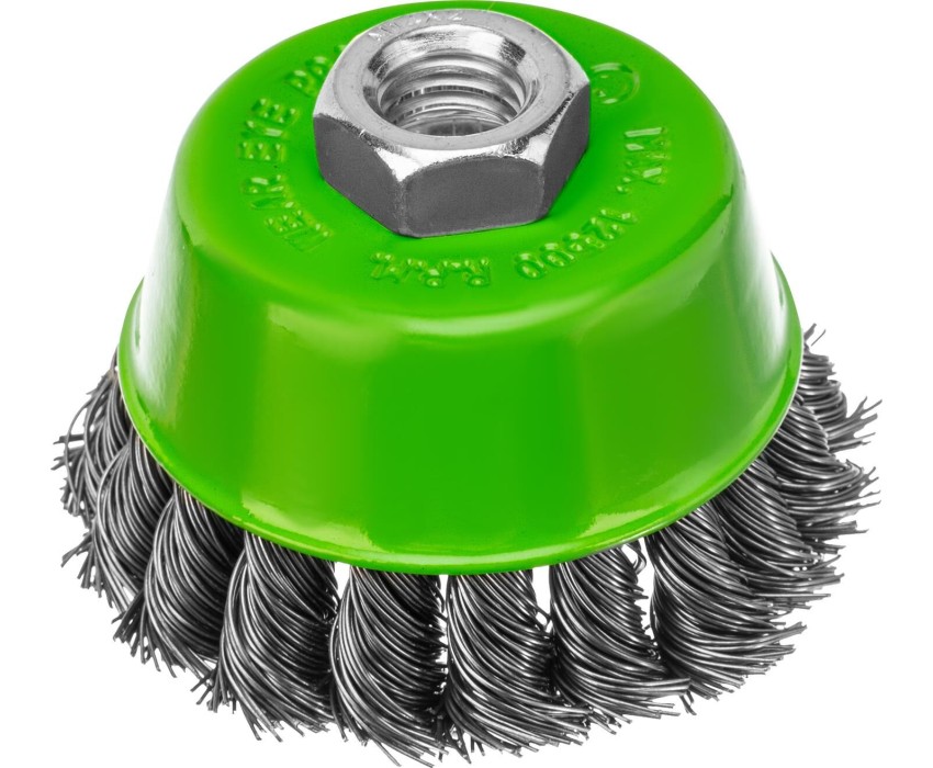 Щетка Сибртех «Чашка» 746247 диаметром 75 мм, с присоединительной резьбой М14, с щетиной из крученой проволоки диаметром 0,5 мм, устанавливается на УШМ, поддерживающую работу со скоростью 12500 об/мин. Изделие предназначено для грубой (черновой) обработки поверхностей и подходит для удаления загрязнений, снятия толстого слоя ржавчины, ЛКМ, зачистки сварных швов. Преимущества Прочность и долговечность — щетина из крученой стальной проволоки выдерживает значительные нагрузки. Высокая производительность — насадка формы «чашка» оптимальна для зачистки больших поверхностей. Универсальность — щетка подходит для обработки любых твердых материалов: металла, древесины, цветных металлов, пластика и т. д. Устойчивость к разрушению — корпус покрыт эмалью, а щетина —техническим маслом.