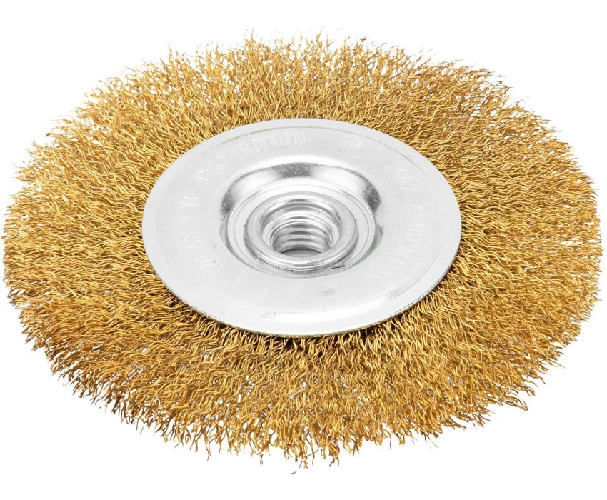 Плоская щетка Matrix 74651 диаметром 125 мм, с щетиной из латунированной витой проволоки, крепится к валу УШМ с помощью гайки М14. Используется для щадящей обработки поверхностей, снятия тонкого слоя ржавчины, лакокрасочных покрытий, удаления въевшихся загрязнений. Плоской щеткой удобно работать в труднодоступных местах: углах и изгибах. При эксплуатации на рекомендованной скорости 6500 об/мин оснастка прослужит долго. Преимущества Деформационная стойкость — витая проволока из стали хорошо держит форму даже при высоких нагрузках. Решение широкого спектра задач — оснастка подходит для обработки древесины, пластика, металлов, в том числе цветных, а также других материалов. Защита от разрушения — оцинкованный корпус и латунированная щетина устойчивы к коррозии.