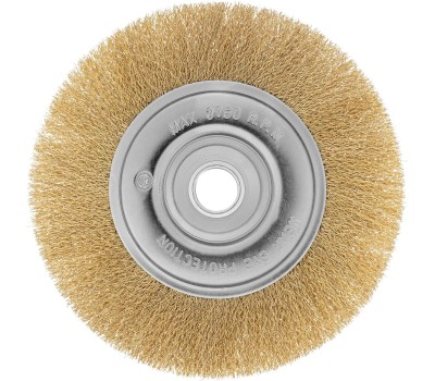 Плоская щетка для УШМ Matrix 74668 диаметром 200 мм, с щетиной из латунированной витой проволоки, посадкой 22,2 мм, предназначена для щадящей обработки поверхностей. Устанавливается на вал УШМ, поддерживающей скорость вращения не более 3750 об/мин. За счет плоской формы эффективно удаляет загрязнения, ржавчину и лакокрасочные покрытия в труднодоступных местах: углах и изгибах. Преимущества Высокий ресурс — латунированная щетина из стальной проволоки выдерживает длительную эксплуатацию, в том числе в условиях повышенной влажности. Универсальность — оснасткой можно обрабатывать твердые материалы любого типа: металл, древесину, цветные металлы, пластик и т. д. Антикоррозионные свойства — цинковое покрытие защищает корпус от разрушения.