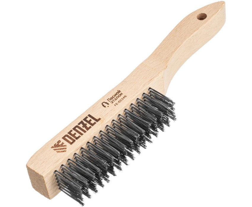 Зачистная 6-рядная щетка Denzel 74846 с прямой проволокой из нержавеющей стали и деревянной рукояткой — ручной инструмент для обработки деревянных, металлических и других поверхностей. Позволяет удалять загрязнения, ржавчину, остатки отделочных покрытий и т.д. Стальная щетина толщиной 0,3 мм с высокой абразивной способностью, расположенная в 6 рядов, обеспечивает эффективное выполнение работ. Преимущества Высокое качество обработки — щетина изготовлена из нержавеющей стали, ее частицы не вызывают микрокоррозии зачищаемого материала. Долговечность — стальная проволока устойчива к воздействию влаги. Комфортная работа — деревянная рукоятка удобно ложится в руку, что снижает усталость во время длительной работы. Экологичность — инструмент соответствует стандартам системы «Лесной эталон», при изготовлении использована древесина из сертифицированных лесов, полностью соблюдены требования, направленные на сохранение экологически ценных лесов.