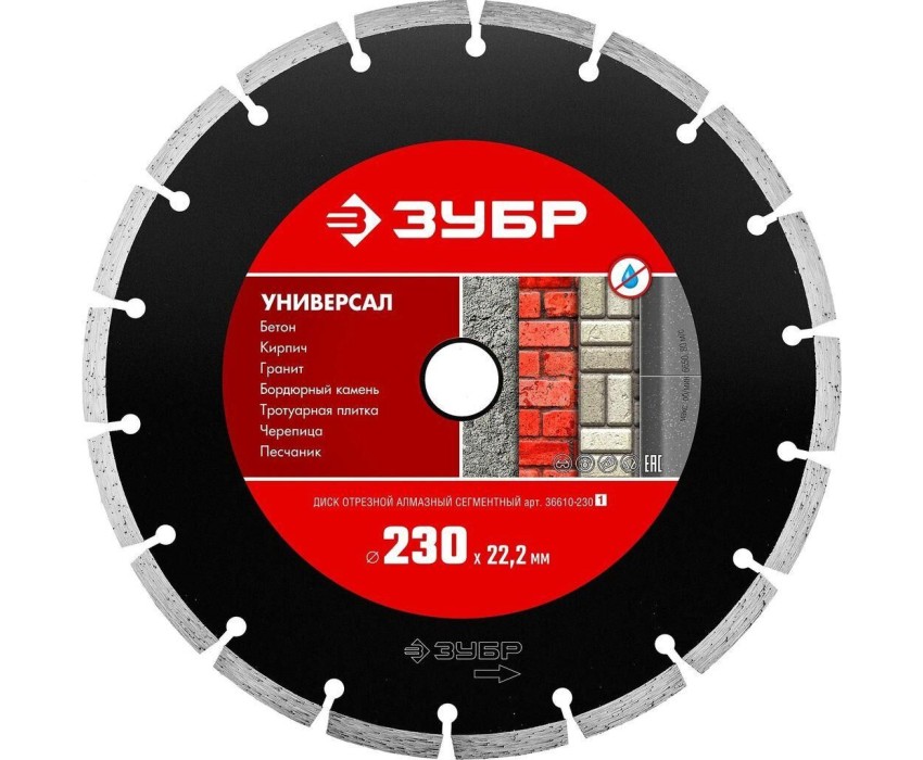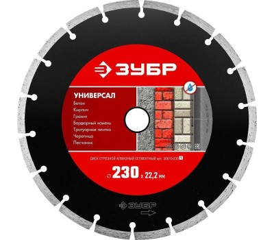 ЗУБР Диск алмазный по бет. 36610-230 (36610-230_Z01) d=230мм d(посад.)=22.2мм (угловые шлифмашины) (упак.:1шт)