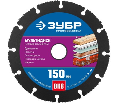 ЗУБР Мультидиск, 150 х 22.2 мм, для УШМ, диск отрезной по дереву (с твердосплавным зерном), Профессионал (36859-150)