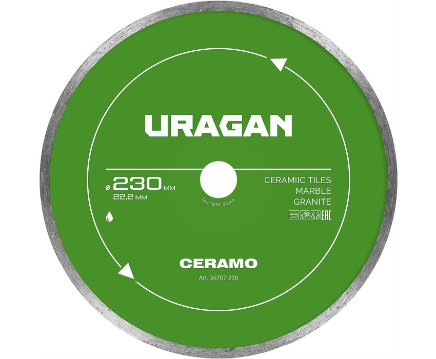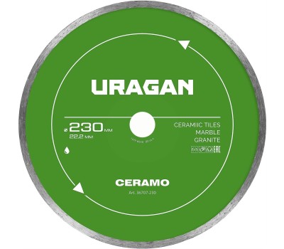 URAGAN CERAMO 230 мм, диск алмазный отрезной сплошной (36707-230)