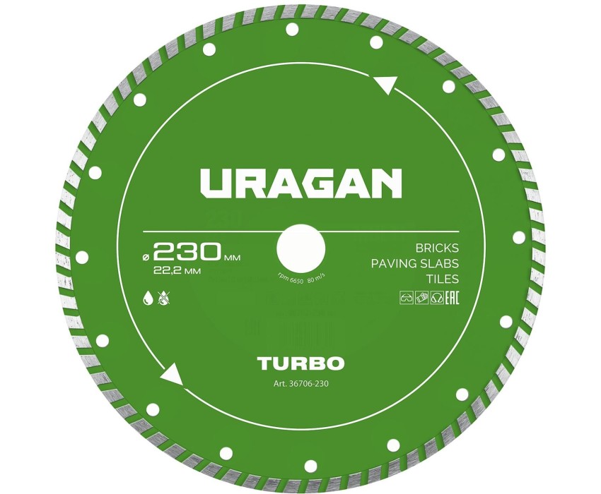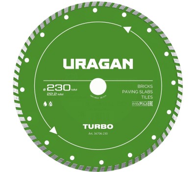URAGAN TURBO 230 мм, диск алмазный отрезной сегментированный (36706-230)