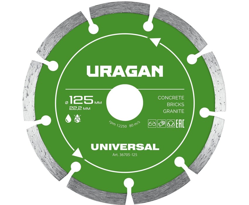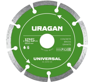URAGAN UNIVERSAL 125 мм, диск алмазный отрезной сегментный (36705-125)