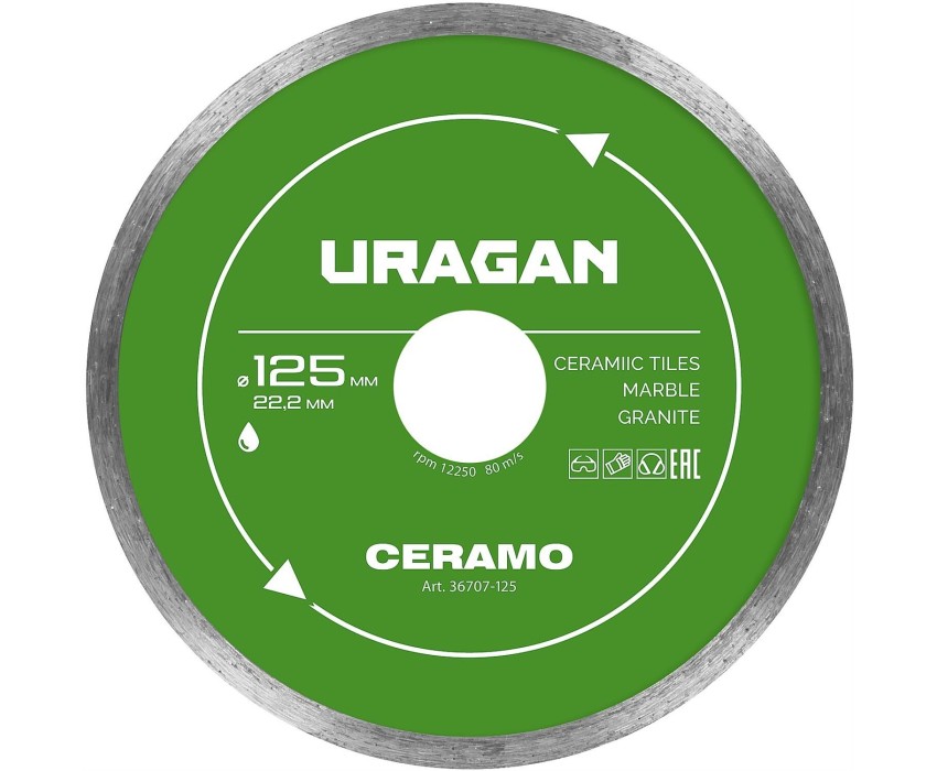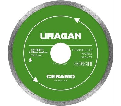 URAGAN CERAMO 125 мм, диск алмазный отрезной сплошной (36707-125)