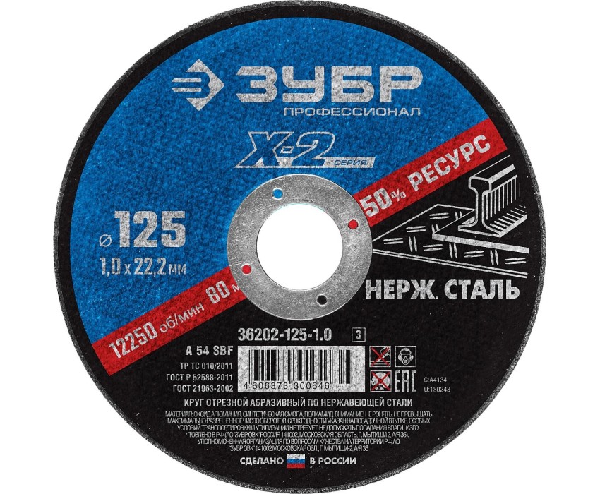 ЗУБР 125 x 1.0 x 22.2 мм, круг отрезной по нержавеющей стали, Профессионал (36202-125-1.0)