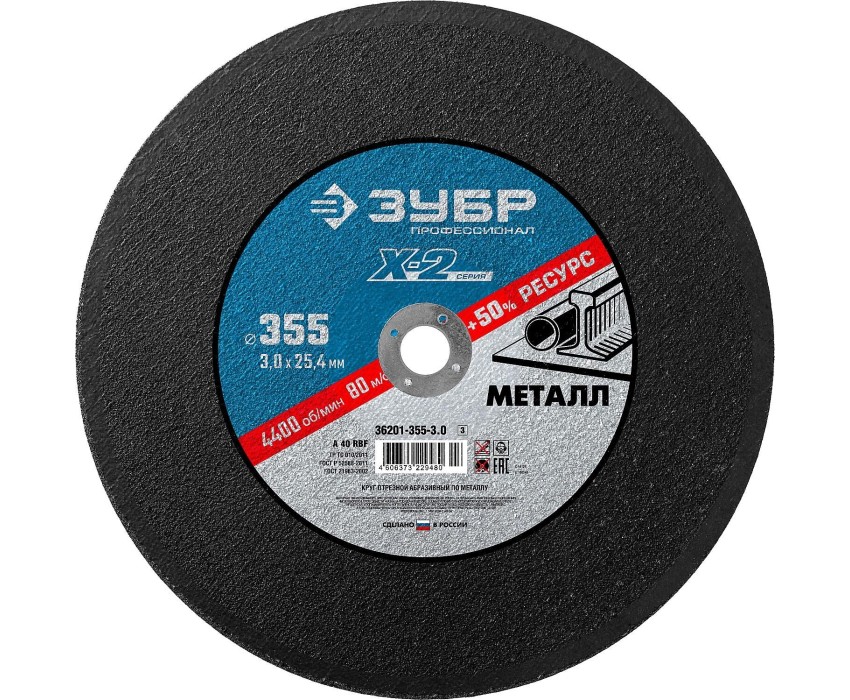 ЗУБР 355 x 3.0 x 25.4 мм, для УШМ, круг отрезной по металлу, Профессионал (36201-355-3.0)