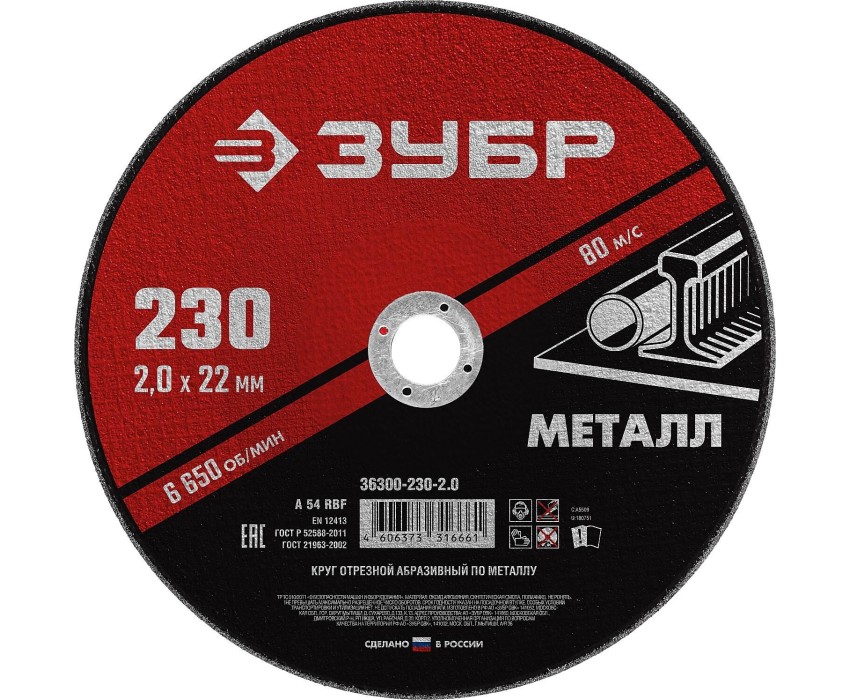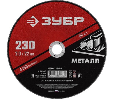 ЗУБР 230 x 2.0 х 22.2 мм, для УШМ, круг отрезной по металлу (36300-230-2.0)