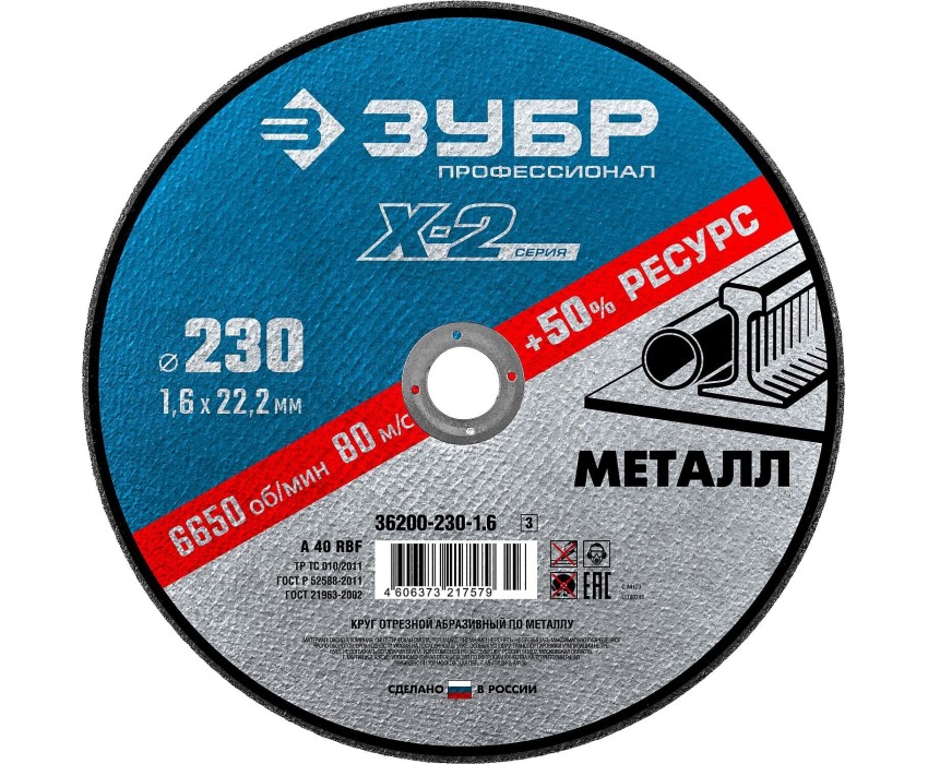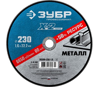 ЗУБР 230 x 1.6 x 22.2 мм, для УШМ, круг отрезной по металлу, Профессионал (36200-230-1.6)