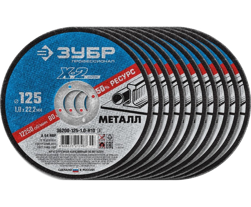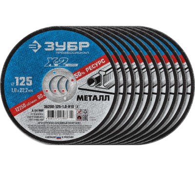 ЗУБР 125 x 1.0 x 22.2 мм, 10 шт, для УШМ, набор кругов отрезныx по металлу, Профессионал (36200-125-1.0-H10)