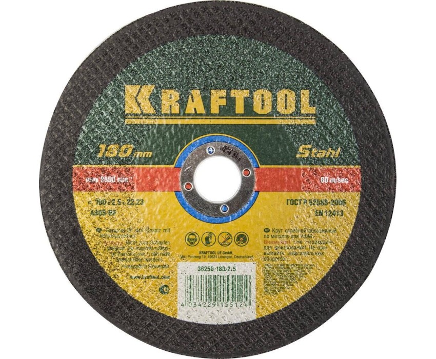 KRAFTOOL 180 x 2.5 x 22.2 мм, для УШМ, круг отрезной по металлу (36250-180-2.5)