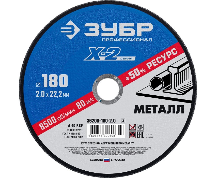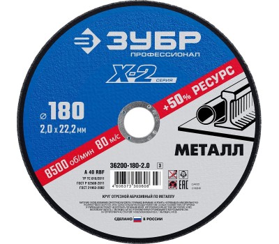 ЗУБР 180 x 2.0 x 22.2 мм, для УШМ, круг отрезной по металлу, Профессионал (36200-180-2.0)