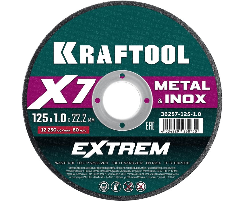 KRAFTOOL X7-EXTREM 125x1.0 мм по металлу отрезной диск для УШМ (36257-125-1.0)