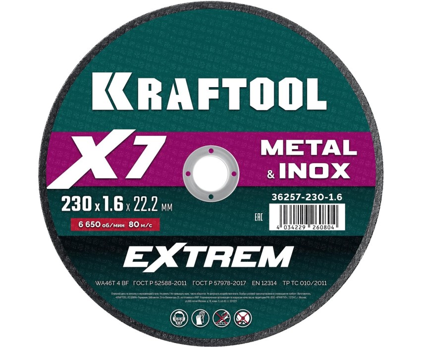 KRAFTOOL X7-EXTREM 230x1.6 мм по металлу отрезной диск для УШМ (36257-230-1.6)