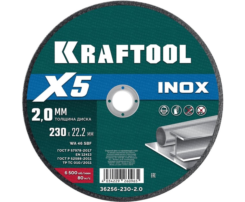 KRAFTOOL X5 INOX 230x2.0 мм по нерж. стали отрезной диск для УШМ (36256-230-2.0)
