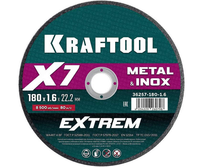 KRAFTOOL X7-EXTREM 180x1.6 мм по металлу отрезной диск для УШМ (36257-180-1.6)