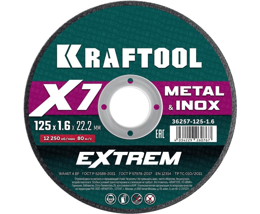 KRAFTOOL X7-EXTREM 125x1.6 мм по металлу отрезной диск для УШМ (36257-125-1.6)