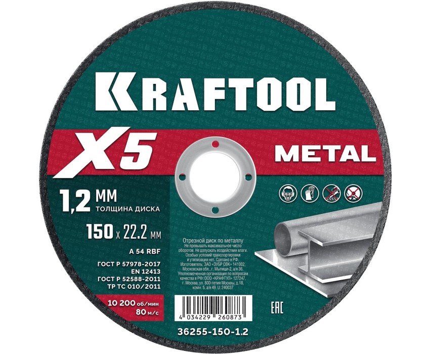 KRAFTOOL X5 Metal 150x1.2 мм по металлу отрезной диск для УШМ (36255-150-1.2)