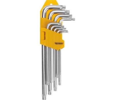 Имбусовый ключ KRANZ (KR-12-5221) Набор ключей имбусовых Tamper-Torx 9 шт., ТТ10-ТТ50, закаленные, удлиненные, никель