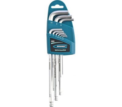 Набор инструментов GROSS Набор ключей имбусовых HEX, 1.5-10 мм, S2, 9 шт, экстра-длинные с шаром, сатинированные 16404