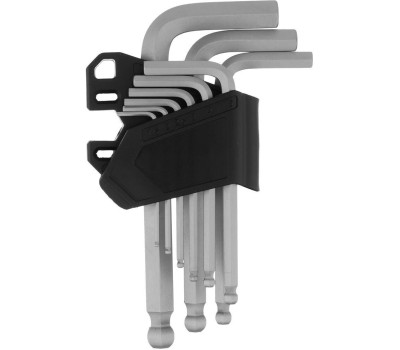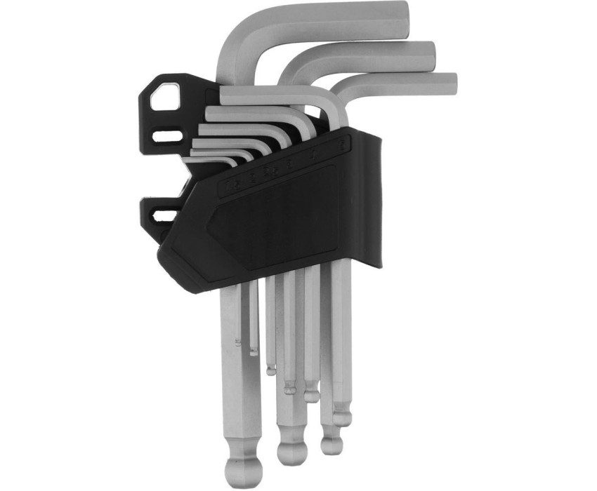 Набор Сибртех 123627 включает в себя 9 имбусовых ключей из стали CrV размером 1,5-10 мм, с шаром, предназначенных для закручивания и откручивания крепежа со шлицем типа HEX. Шарообразные наконечники можно вставлять в головку крепежа под углом до 25°, что облегчает работу в ограниченном пространстве. Набор пригодится для ремонта велосипедов, сборки мебели, установки и регулировки пластиковых окон.