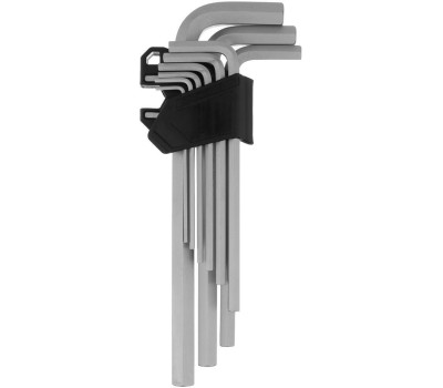 Набор Сибртех 123697 включает в себя 9 удлиненных имбусовых ключей из стали CrV, размером 2-12 мм, предназначенных для закручивания и откручивания крепежа со шлицем типа HEX. Ключи удобны для работы в труднодоступных местах. Набор пригодится для ремонта велосипедов, сборки мебели, установки и регулировки пластиковых окон.
