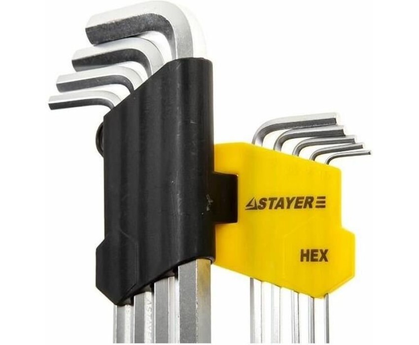 Набор имбусовых ключей, длинные с шариком 9 предметов STAYER MASTER 2741-H9-2 размещен на специальном держателе, что облегчает транспортировку и хранение. Комплект включает девять ключей различного размера. Ключи выполнены из высокопрочной стали. Шарик на конце ключей позволяет работать даже в труднодоступных местах. Технические характеристики ключей STAYER 2741-H9-2 Размер min, мм 1.5 Размер max, мм 10 Материал CrV Трещотка нет Количество в наборе, шт 9 Тип шестигранные Диэлектрическое покрытие нет