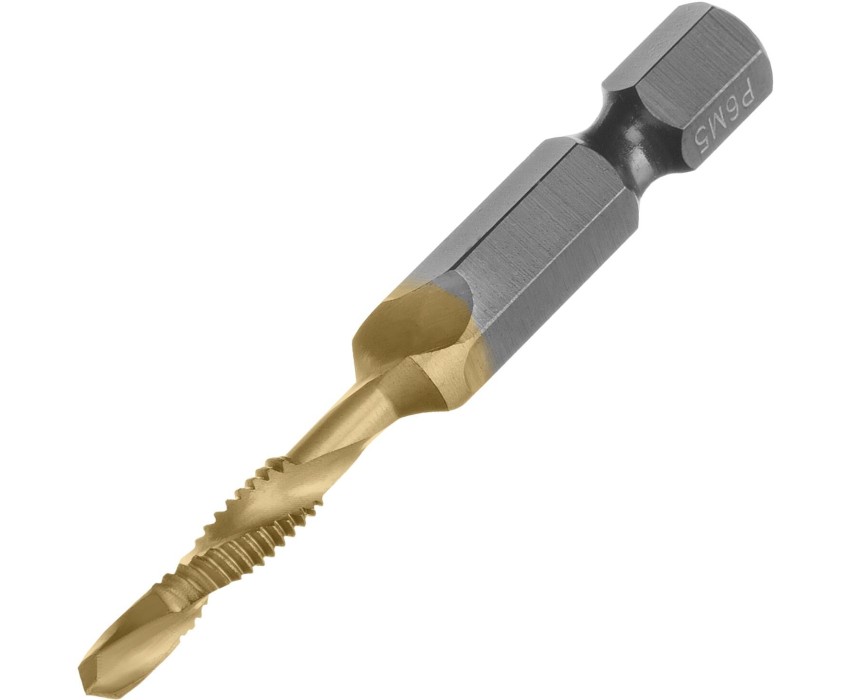 Сверло-метчик Denzel 76720 из стали P6M5 предназначено для получения глухих и сквозных отверстий в металлических заготовках с одновременным нарезанием правой резьбы M4 с шагом 0,7 мм. Позволяет существенно сэкономить время работы, объединив две операции в одну. Угол заточки 135° оптимален для работы с чугуном, сталью, алюминием, медью, бронзой. Ресурс оснастки увеличен в 10 раз по сравнению с аналогичными моделями из углеродистой стали. Преимущества Прочность — оснастка из быстрорежущей стали обеспечивает высокую эффективность работы в течение длительного времени. Долговечность — нитридтитановое покрытие защищает от повреждений и уменьшает трение, что увеличивает устойчивость сверла-метчика к износу. Быстрое засверливание — благодаря подточенной поперечной кромке можно приступать к работе без предварительной разметки поверхности (накернивания). Высокое качество выполняемых работ — сверлу-метчику присвоен класс точности 4H. Удобный поиск среди других инструментов — на хвостовик нанесена лазерная гравировка с обозначением типоразмера. Надежная фиксация — шестигранный хвостовик не проворачивается в патроне электроинструмента.