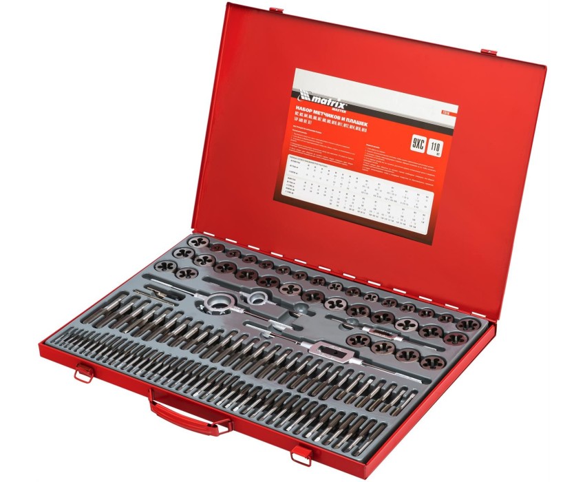 MATRIX Набор метчиков и плашек М2-М18, 110 шт, металлический кейс 773110