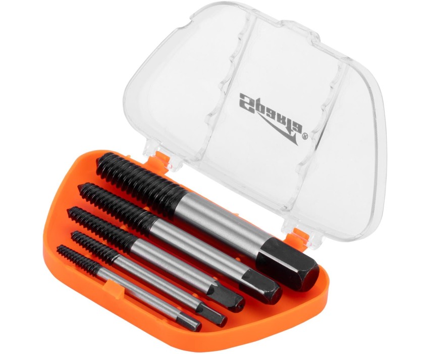 Набор экстракторов Sparta 773505, 5 шт., поможет извлечь застрявшие сломанные болты и шпильки с правой резьбой. Он обеспечивает эффективный результат при решении задач любой сложности. Набор пригодится строителям, автомеханикам и ремонтниками при проведении бытовых работ. Преимущества Экстракторы из конструкционной углеродистой стали 45 отличаются прочностью, надежностью и долговечностью. Винтовые спиральные экстракторы не вбиваются как обычные, а вкручиваются, что позволяет вывернуть крепеж вне зависимости от степени поломки. Набор поставляется в пластиковом боксе, его удобно транспортировать и хранить, а содержимое при этом не потеряется.