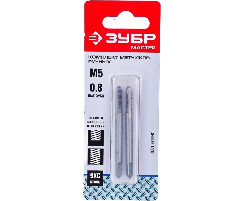 ЗУБР Набор метчиков 4-28006-05-0.8-H2 в комплекте 2 предмета